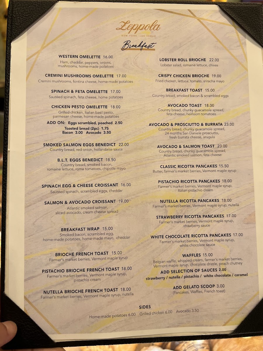 Whether you’re grabbing a light breakfast of fluffy omelettes and avocado toast, or enjoying a leisurely lunch, Zeppola Cafe promises to deliver dishes that are not just meals—but experiences to be remembered. With fast and friendly service, you can expect promptness while soaking in the beautiful ambiance of the Venetian canals.